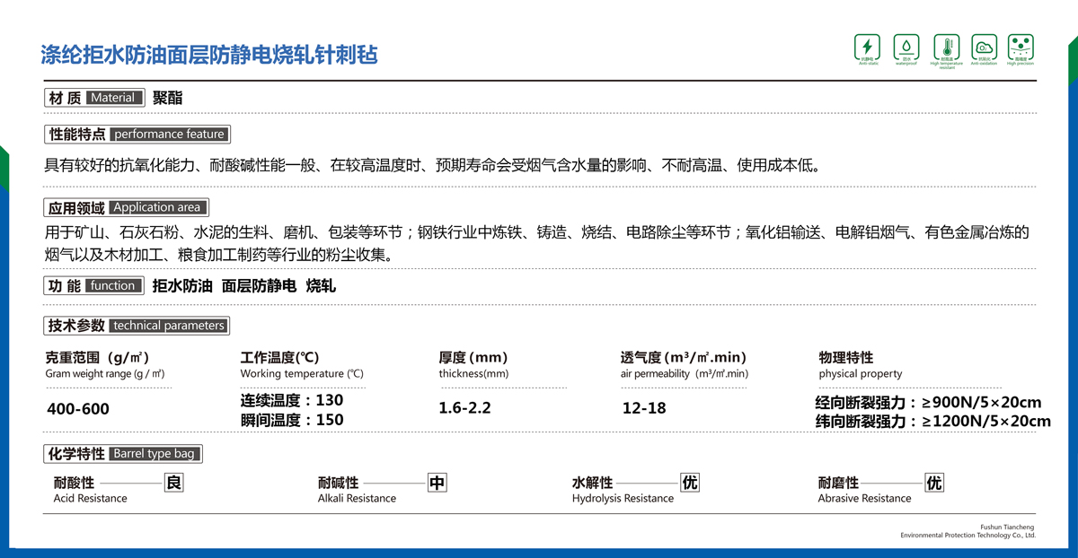 滌綸拒水防油面層防靜電燒軋針刺氈