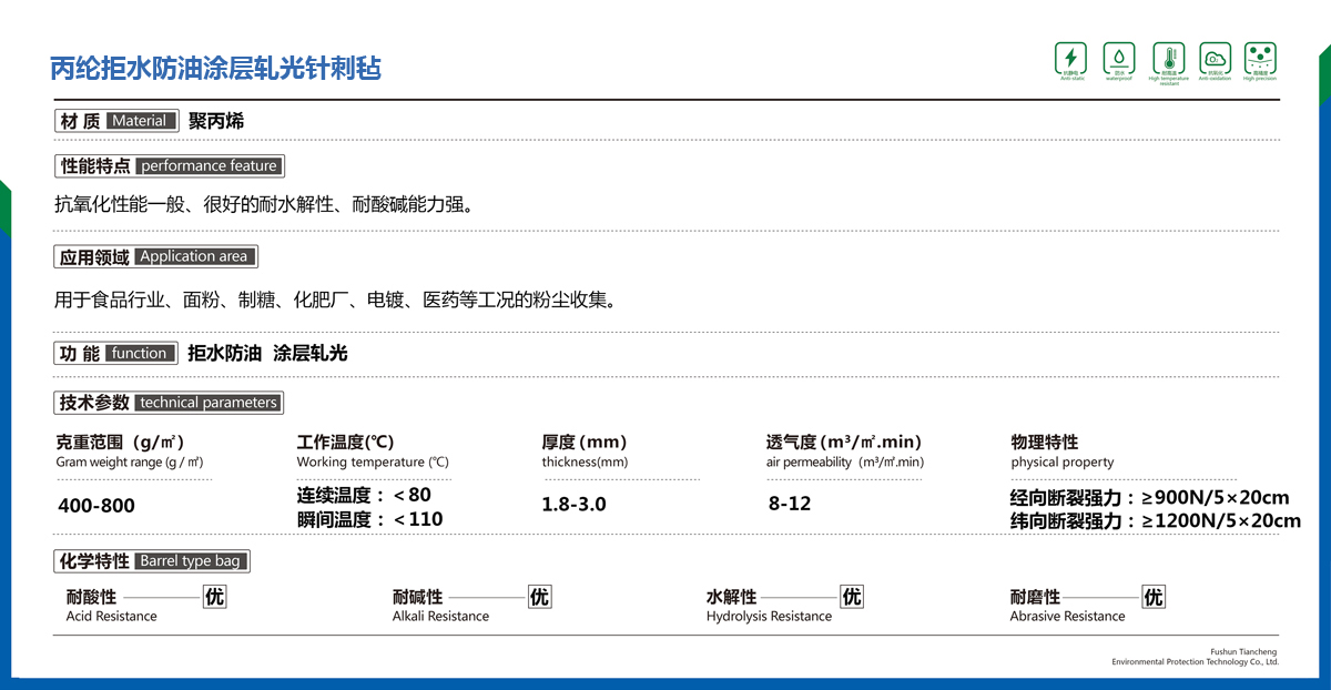 丙綸拒水防油涂層軋光針刺氈
