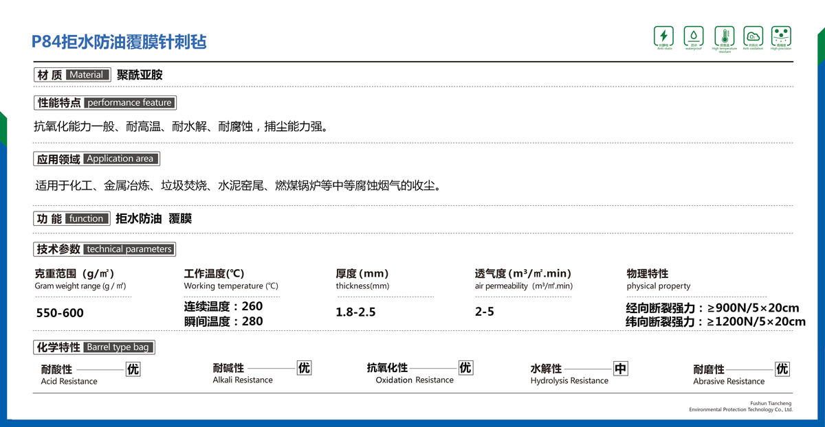 P84拒水防油覆膜針刺氈